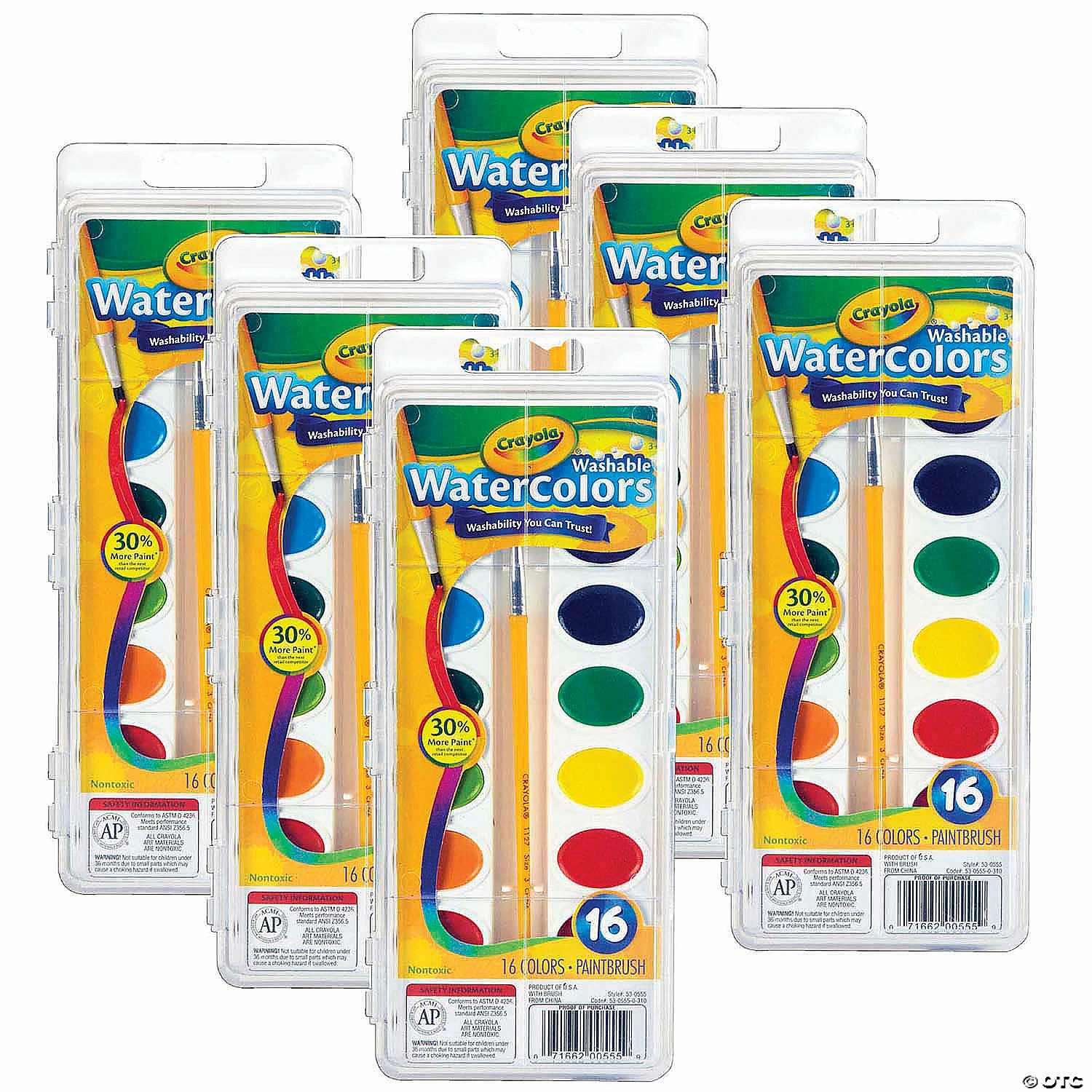 Discount π Crayola Washable Watercolors, 16 Semi-Moist Oval Pans & Brush, 6 Sets π