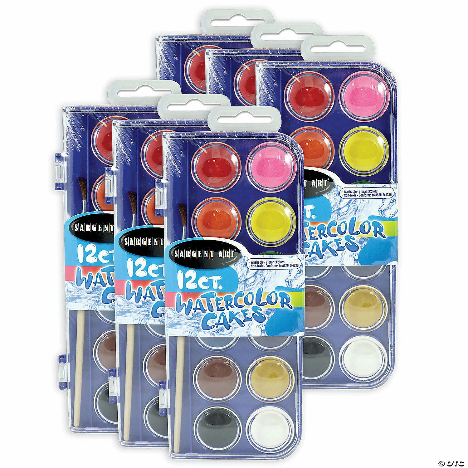 Promo 𧨠Sargent Art Watercolor Set, Plastic Case with Brush, 12 Colors Per Set, 6 Sets π